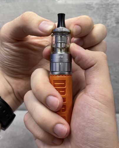 Что касается затяжки, тут все зависит от испарителя внутри. Можно получить вполне себе трушный MTL, можно что-то близкое к прижатой кальянке. Привычной системой обдува через отверстия поступились, забор воздуха, как ни странно, осуществляется сквозь незаметные пазы у основания Танка. Удар по горлу имеется при тугой тяге, а вот на свободной он практически незаметен.