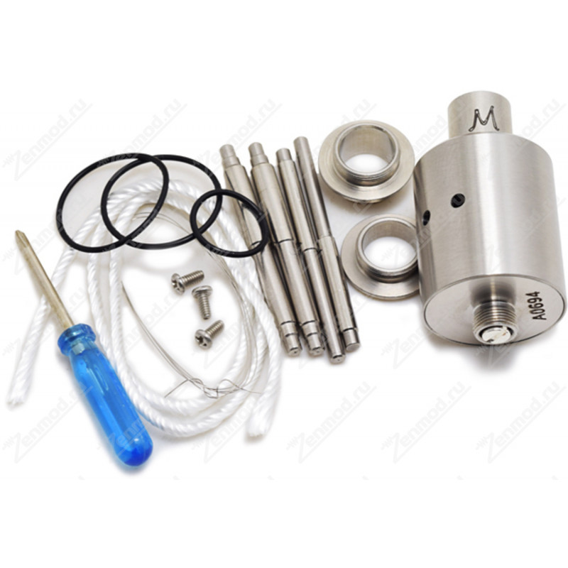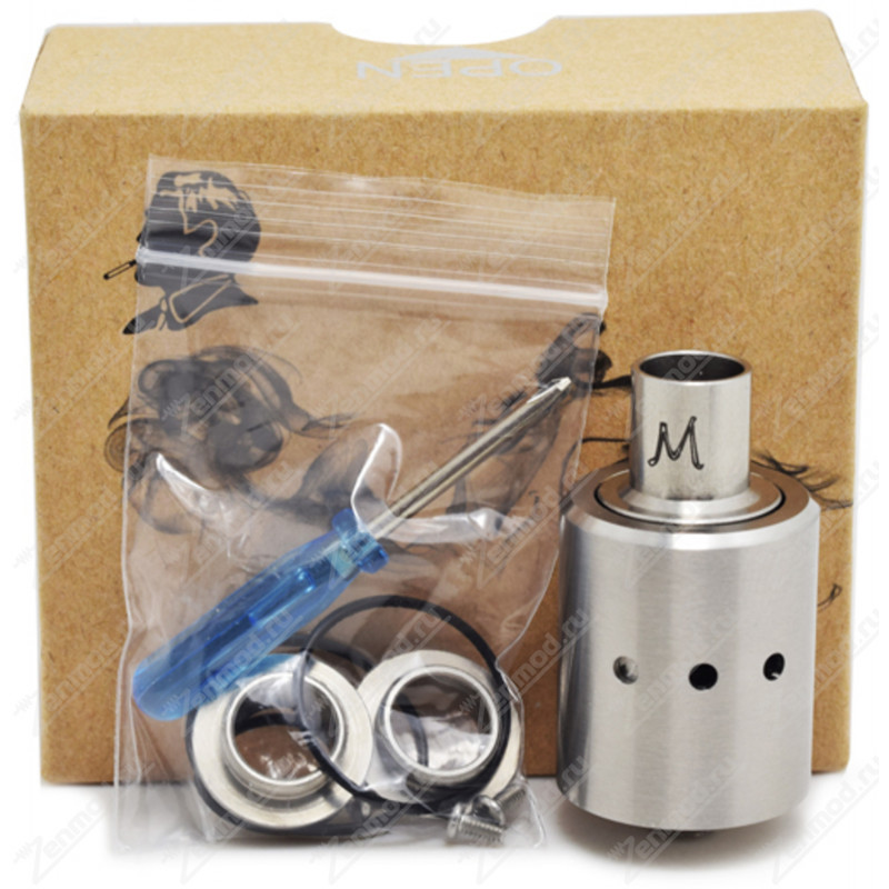 Дрипка Marquis вышла не так давно, в конце 2014 года, но уже успела завоевать популярность среди вэйперов. Чем же она сумела заинтересовать? Безусловно, Marquis обладает обильным обдувом, без которого невозможно «гоняться за облаками», но сейчас на рынке существует немало дрипок с хорошим обдувом. Данная же модель хороша удобством крепления спиралей. В комплекте с ней поставляются стержни разных диаметров, которые в момент намотки крепятся на дне (при вертикальной ориентации спиралей, как в Origen RDA), либо вставляются прямо в воздуховод (для спиралей «шахт»). Стержни сильно облегчают пользователю настройку устройства. Также, в дрипке Marquis центральная стойка сделана в форме короны для более удобного закрепления концов проволоки.
